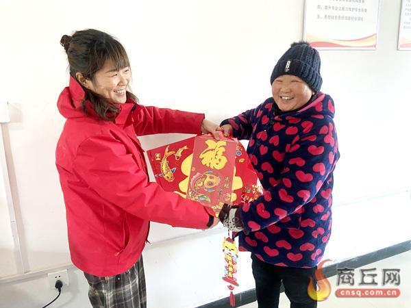 2月2日,民权县南华街道办事处社会工作服务站社工给社区老人送上的新年祝“福”。该办事处精心组织开展“新春乐翻天,欢乐过大年”主题活动,社工陪老人们贴新年寓意吉祥物、剪纸画等,在相互交流中感受中国传统文化。记者 闫鹏亮 摄