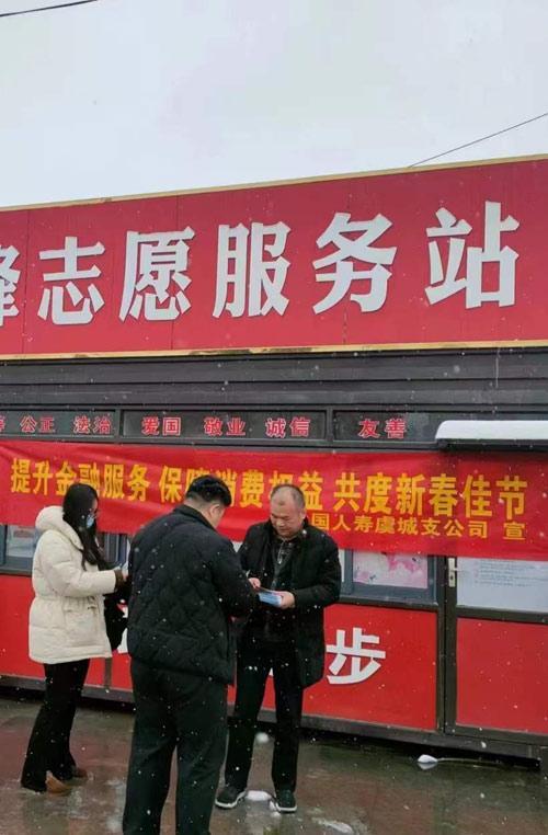 2月4日,中国人寿虞城支公司客户服务部工作人员到虞城县火车站,开展以“提升金融服务 保障消费者权益 共度新春佳节”为主题的金融宣传服务。在活动中,工作人员向群众发放了“学法知法守法 远离保险欺诈”“警惕洗钱陷阱 守护美好生活”的折页,向群众普及金融知识,提升金融风险防范意识,维护自身合法权益。
