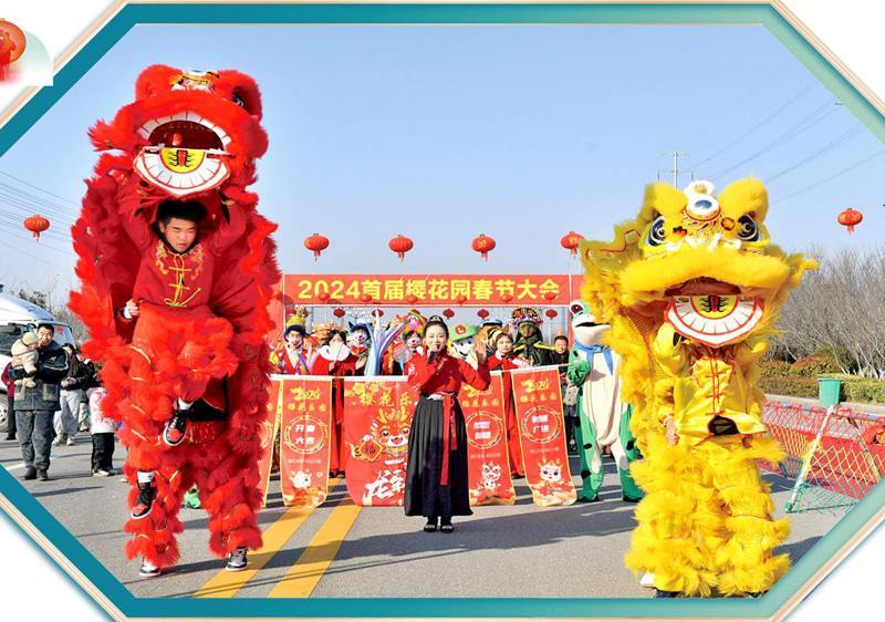 临近年关,夏邑县到处张灯结彩,热闹红火的樱花园春节大会启动。图为近日演员们在大会上巡演,呈现出红红火火迎新春的喜庆气氛。
