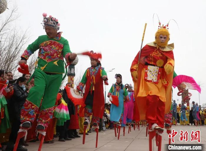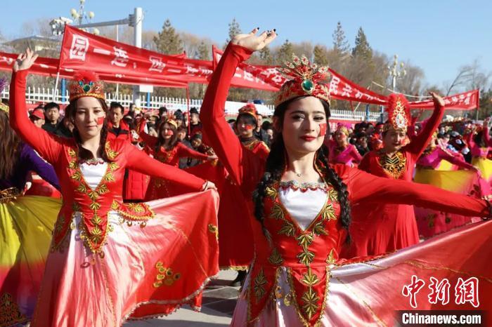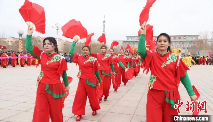 中新网乌鲁木齐2月12日电 (记者 戚亚平)新春佳节,新疆生产建设兵团各地举办社火表演活动,让各族职工群众尽享年味十足的民俗文化“盛宴”,到处洋溢着热闹喜庆的节日氛围。