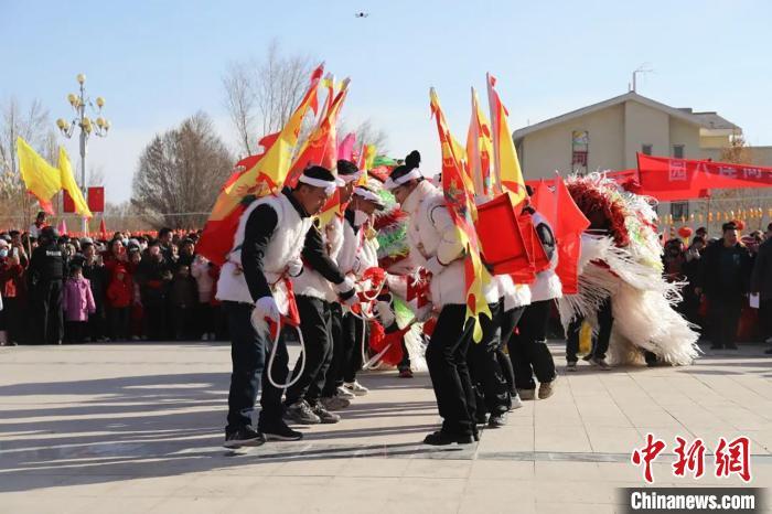 二二三团开泽镇社火表演——舞狮。来源/丝路雄关云客户端