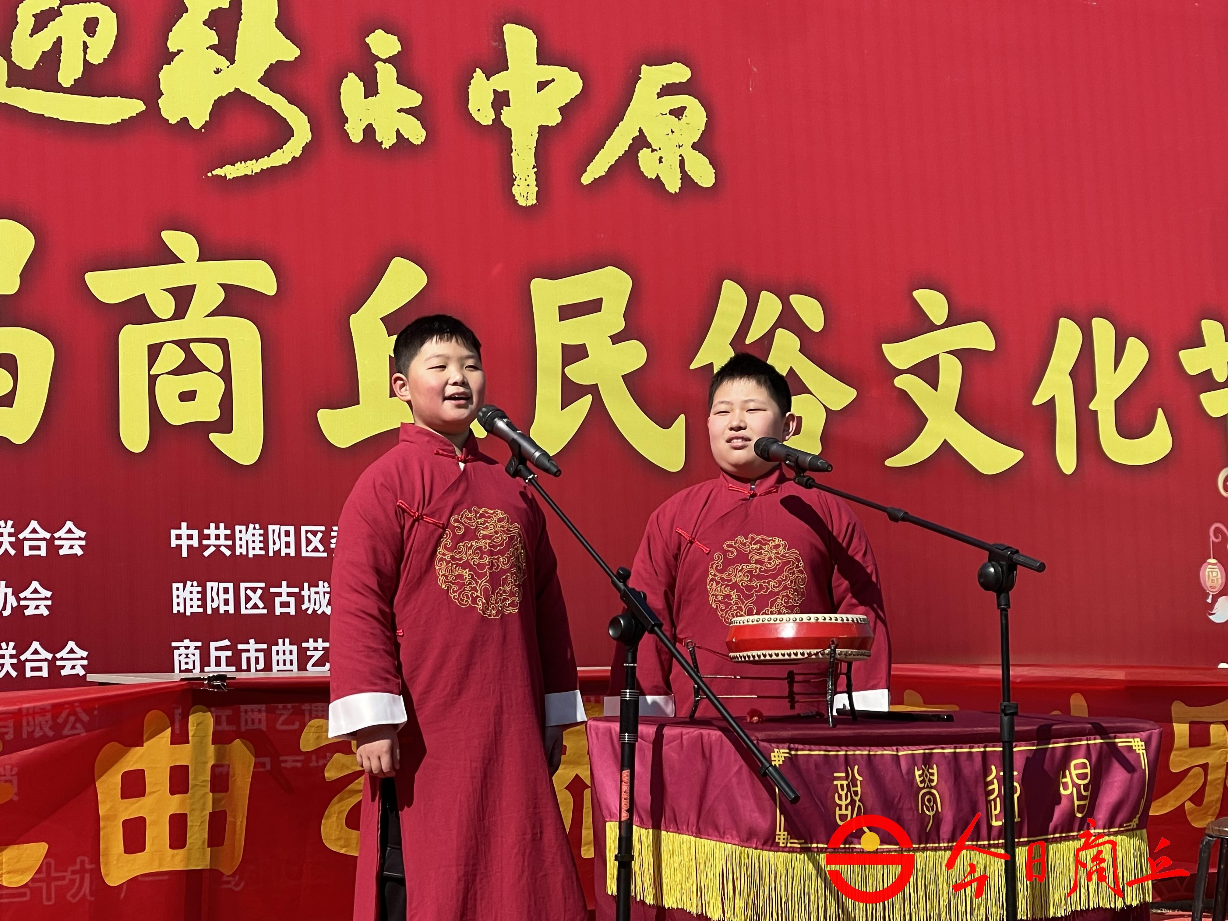张玉萍、陈广礼、郭银华、杜姝梦、马艳华、何玉飞、吕秀勤等演唱的河南坠子《夜游古城》,李好迪表演的快板书《哪吒闹海》,张乐表演的山东快板《娄金斗与大花狗》,郭银华、张玉萍、杜姝梦演唱的河南坠子《二十大》,马畅表演的相声《报菜名》,吕秀勤演唱的河南坠子《特殊的婚礼》,李若溪表演的快板《经典就在我身边》,张晨茜表演的快板书《琪琪的日记》,宋丽演唱的豫剧《穆桂英挂帅》,钟昊轩万轩绮表演的相声《反正话》,屠祥玉,演唱、周新伴奏的河南坠子《承古创新向未来》,刘峻熙表演的快板《西柏坡》,李庚璞表演的相声《莽撞人》,马艳华演唱的河南坠子《西厢记》,李佳迅表演的数来宝《同仁堂》,何玉飞演唱的河南坠子《猛虎学艺》,陈广礼演唱的河南坠子《老鼠告猫》等节目精彩不断。台上演员精彩演出轮番登台,台下观众热烈掌声此起彼伏。(文/图 商丘日报融媒体记者 白鹏)