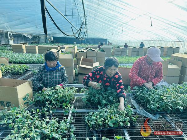 当日上午,记者走进野岗镇常马口村育苗大棚,一股热浪扑面而来,工人正在苗床间熟练地控水、挑苗、装箱,呈现出一派繁忙的景象。