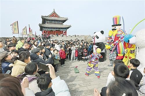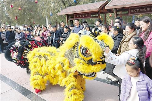 节日期间,商丘的民俗活动异彩纷呈。尤其是古城,更是人潮涌动,舞狮、喷火、戏曲等民俗表演让市民目不暇接。阵阵掌声和欢呼声不仅为节日增添了浓厚的喜庆氛围,也让大家感受到中华文化的魅力。此外,许多人选择前往火神台烧香祈福,祈求新的一年平安顺遂、万事如意。节日的公园也是一片欢乐祥和的景象。有人划船游玩,远远观赏火红的灯笼和初露绿色的嫩柳,欢声笑语在湖面上回荡;有人在草地上放飞风筝,追逐嬉戏,感受春天的活力与喜悦……