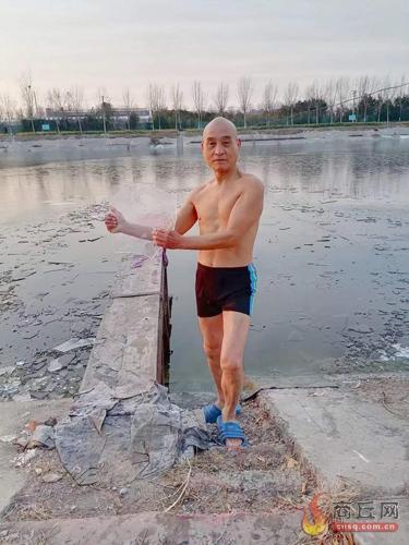 自入冬以来,商丘最冷的时候可以达到零下10℃,有时候还大雪飘飞,人们纷纷穿上了厚厚的羽绒服来抵御严寒。可是在长江东路运河公园,每天早晨6点多,都可以看到一个精瘦的“小老头”在水中游泳。他叫侯学融,今年77岁,是市运输公司的一名退休干部。自2007年至今,他一直坚持冬泳,人送外号“铁老头”。