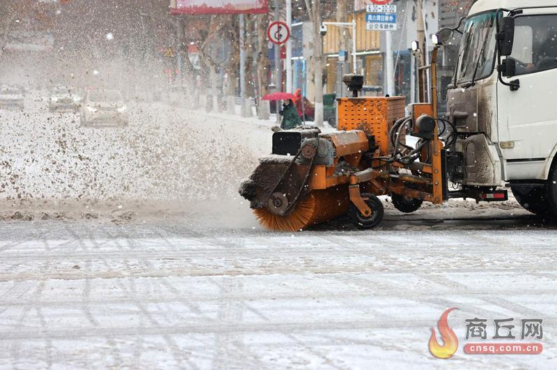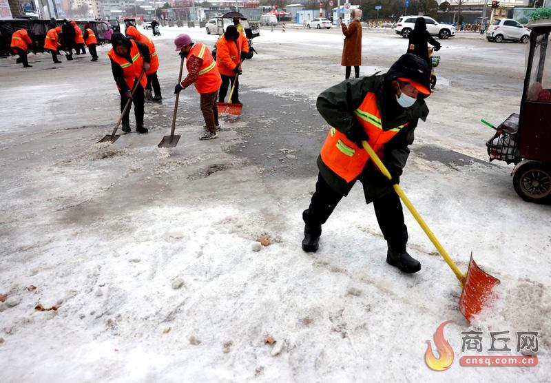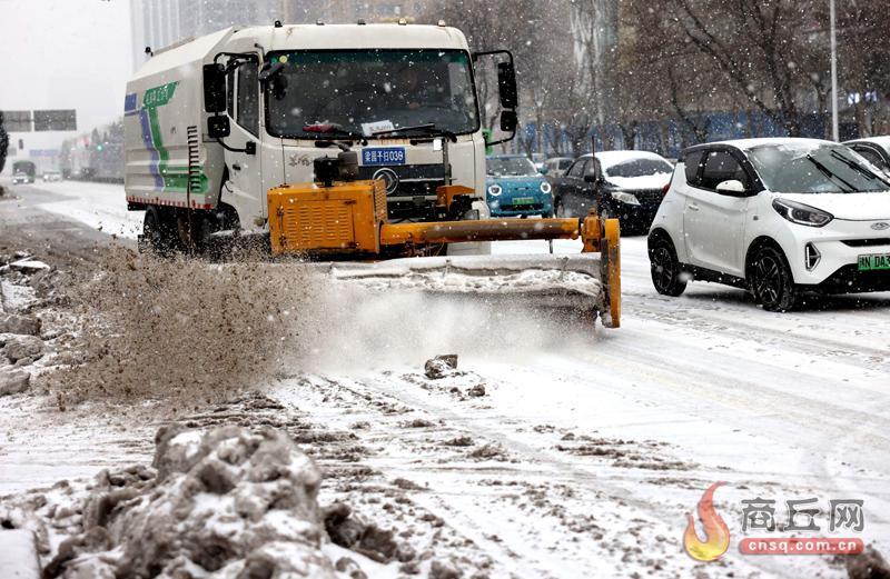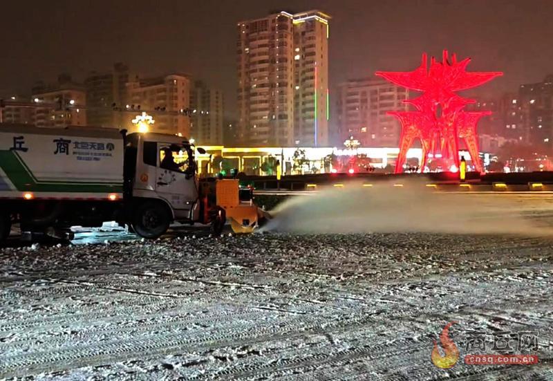 2月21日,我市出现冰粒、冻雨、雨夹雪等复杂天气,市城市管理局、市公安局交警支队、河南交投商丘分公司等多部门迅速行动,调集人员、机械,调运融雪剂,按照“先主后次,先通后净”的原则,积极开展除雪铲冰工作,确保道路畅通,保障群众出行安全。