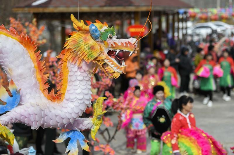 2月22日,河北省遵化市东旧寨镇石桥头村的民间艺人在表演民俗节目。 新华社发 刘满仓 摄