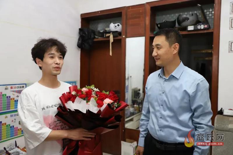 永城市中心医院医疗健康集团领导慰问李岗(左)。 本报资料照片