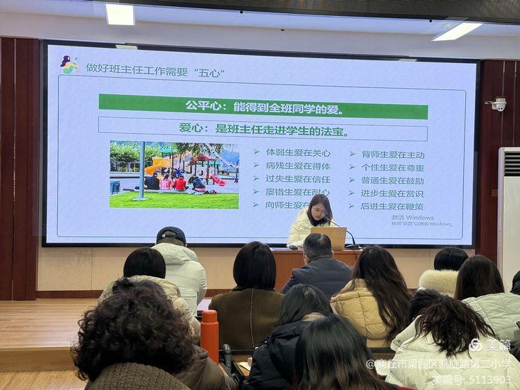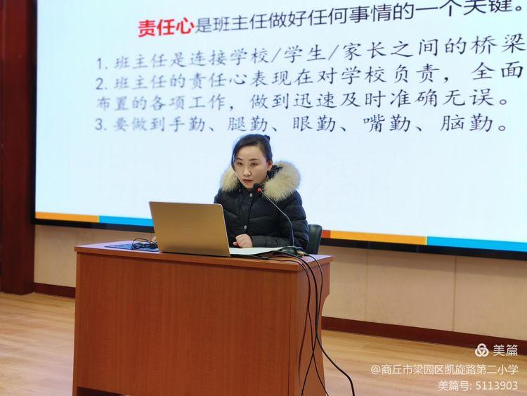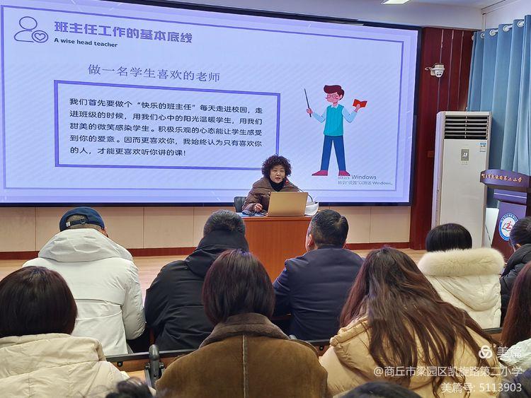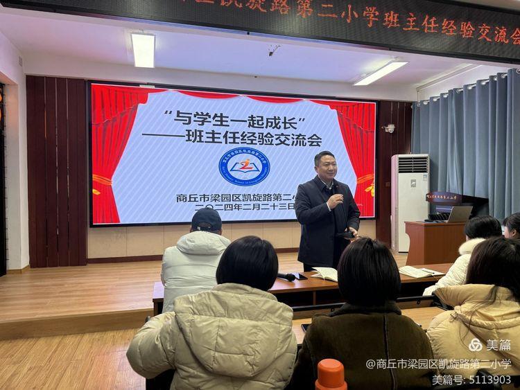班主任是班级管理的掌舵人,在班级发展中起着举足轻重的作用。为了进一步加强班主任队伍建设,探索班级管理新思路、新方法,近日,商丘市梁园区凯旋路第二小学举行主题为“与学生一起成长”——班主任经验交流会,学校领导及全体教师参加会议。
