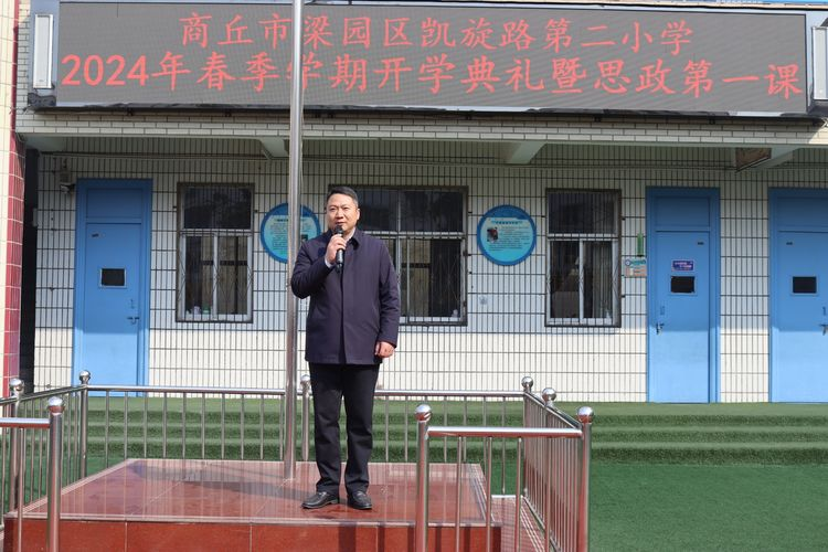 寒假带着春节的喜庆一晃而过,踏着春天的脚步,2月26日,商丘市梁园区凯旋路第二小学2024年春季学期开学典礼暨思政第一课如期而至。