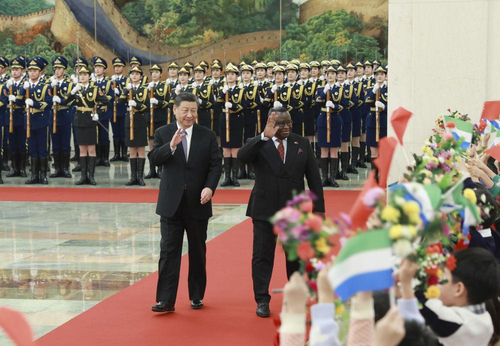 习近平指出,中非人民命运与共。中国始终把发展同非洲国家团结合作作为对外政策的重要基石。中方将秉持真实亲诚理念,加强同非洲国家相互支持和友好合作,将支持非洲工业化倡议、助力非洲农业现代化计划、中非人才培养合作计划同非盟《2063年议程》、非洲各国发展战略紧密对接,把中国的发展、非洲的发展、世界的发展进一步结合起来,推动中非合作提质升级,推动世界走向和平、安全、繁荣、进步的光明前景。中方愿同包括塞拉利昂在内的非洲朋友一道,办好今年的中非合作论坛会议,将中塞、中非友好发扬光大。