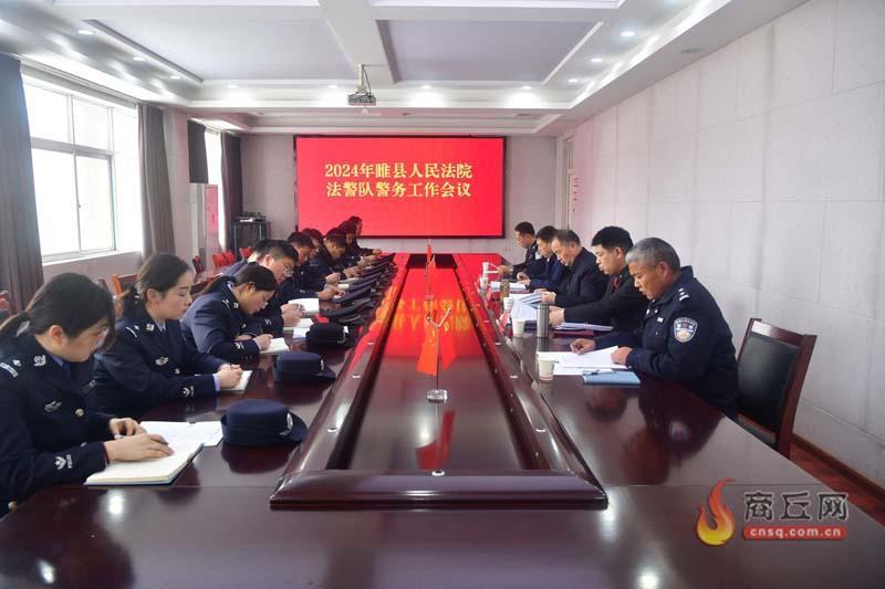 近日,睢县人民法院召开法警大队警务工作推进会,充分保障法院审判执行等各项业务顺利安全开展,用高质量警务保障促进法院工作再上新台阶。 本报融媒体记者 梁晓晨 通讯员 李方弟 摄影报道