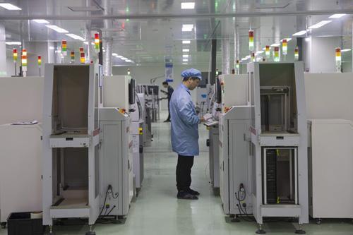 3月1日,技术人员在生产车间检测设备运行情况。梁园区集美数智产业园项目总投资100亿元,可年产手机和平板电脑3000万台、液晶模组7500万片、PCBA2700万片、背光源9360万片、触控玻璃2.4亿片,全部达产后年产值可达300亿元。本报融媒体记者 崔 坤 摄