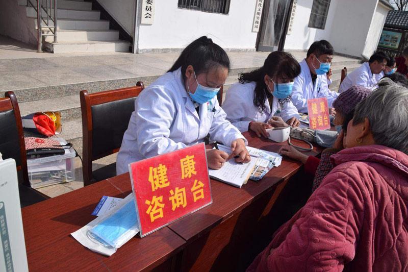◀3月7日,河南省监狱管理局邀请宁陵县中医院专家走进宁陵县城郊乡胡二庄村,开展“健康进万家”专家义诊活动。据了解,本次义诊活动共检查、接受群众咨询160余人次,免费发放药品安全宣传材料200余份(册)。本报融媒体记者 高会鹏 摄