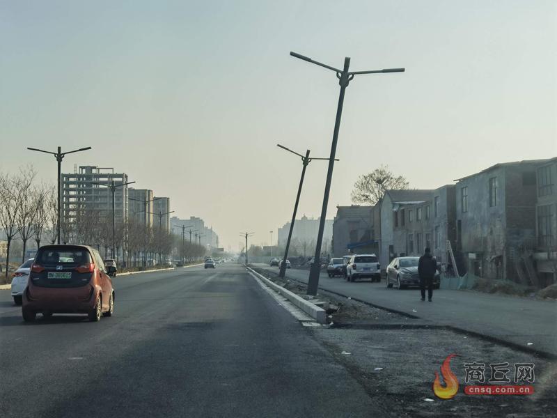 田洪涛还表示,东西两侧的人行道施工还未完成。“路灯不是我们的施工项目,是路灯管理部门实施的。而且,路灯安装较早,此后因西侧热力管道施工又对路面进行开挖。目前,我们正在积极对接路灯施工单位,由他们来对倾斜的路灯灯杆进行处理。”田洪涛说。