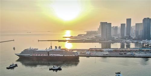 当日,美国荷美邮轮公司“翠德丹”号邮轮停靠大连。这是自去年9月我国全面恢复国际邮轮运输以来,首艘到访东北城市的国际邮轮。