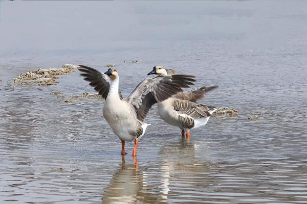 灰雁在水中嬉戏 高 敏 摄