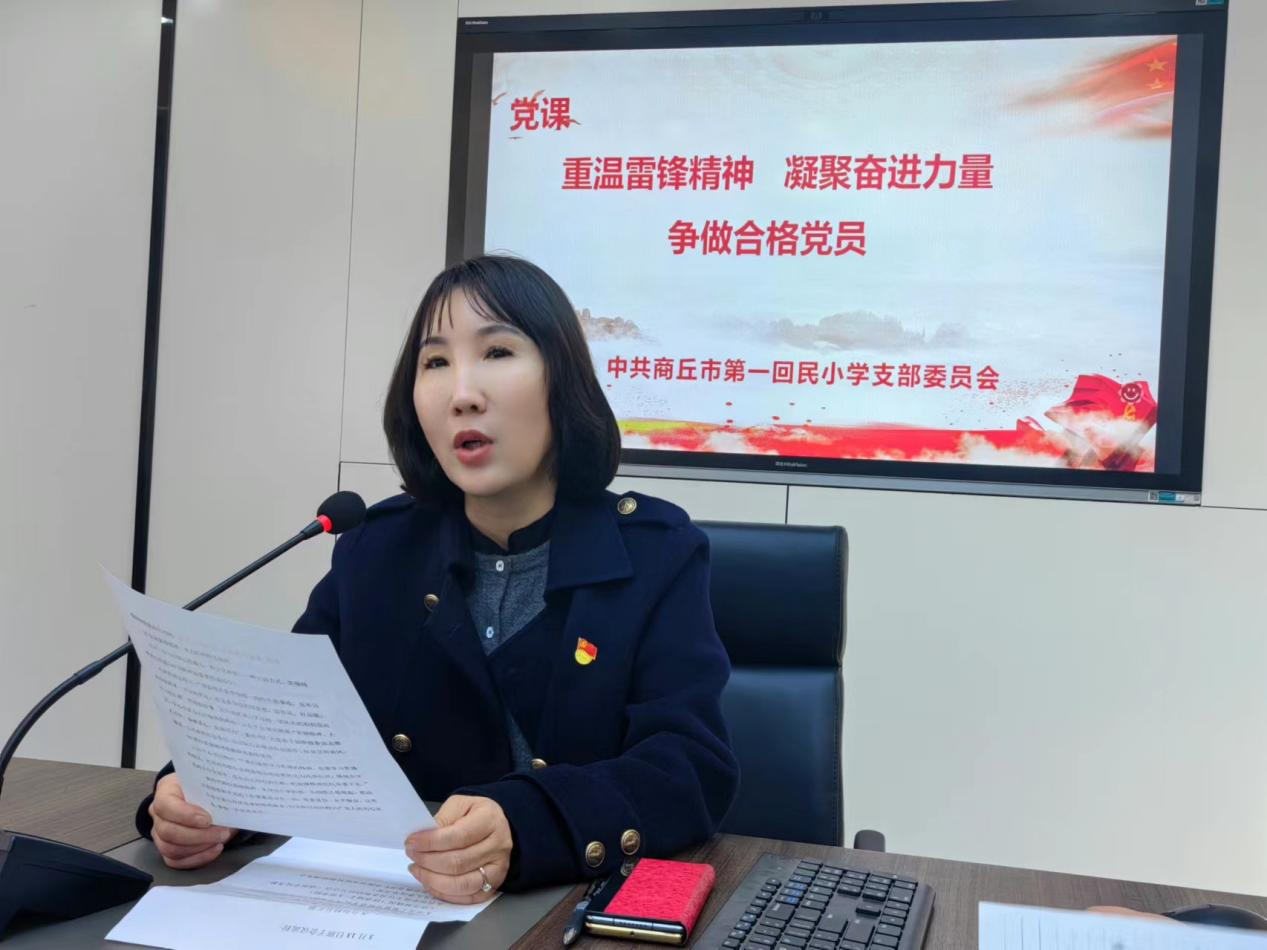 为深入学习贯彻落实习近平总书记关于新时代弘扬雷锋精神的重要指示精神,坚定党员理想信念,深刻把握雷锋精神的时代内涵,让雷锋精神在新时代绽放更加璀璨的光芒。近日,商丘市第一回民小学党支部开展“重温雷锋精神 凝聚奋进力量 争做合格党员”主题党日活动暨第一季度党员大会。