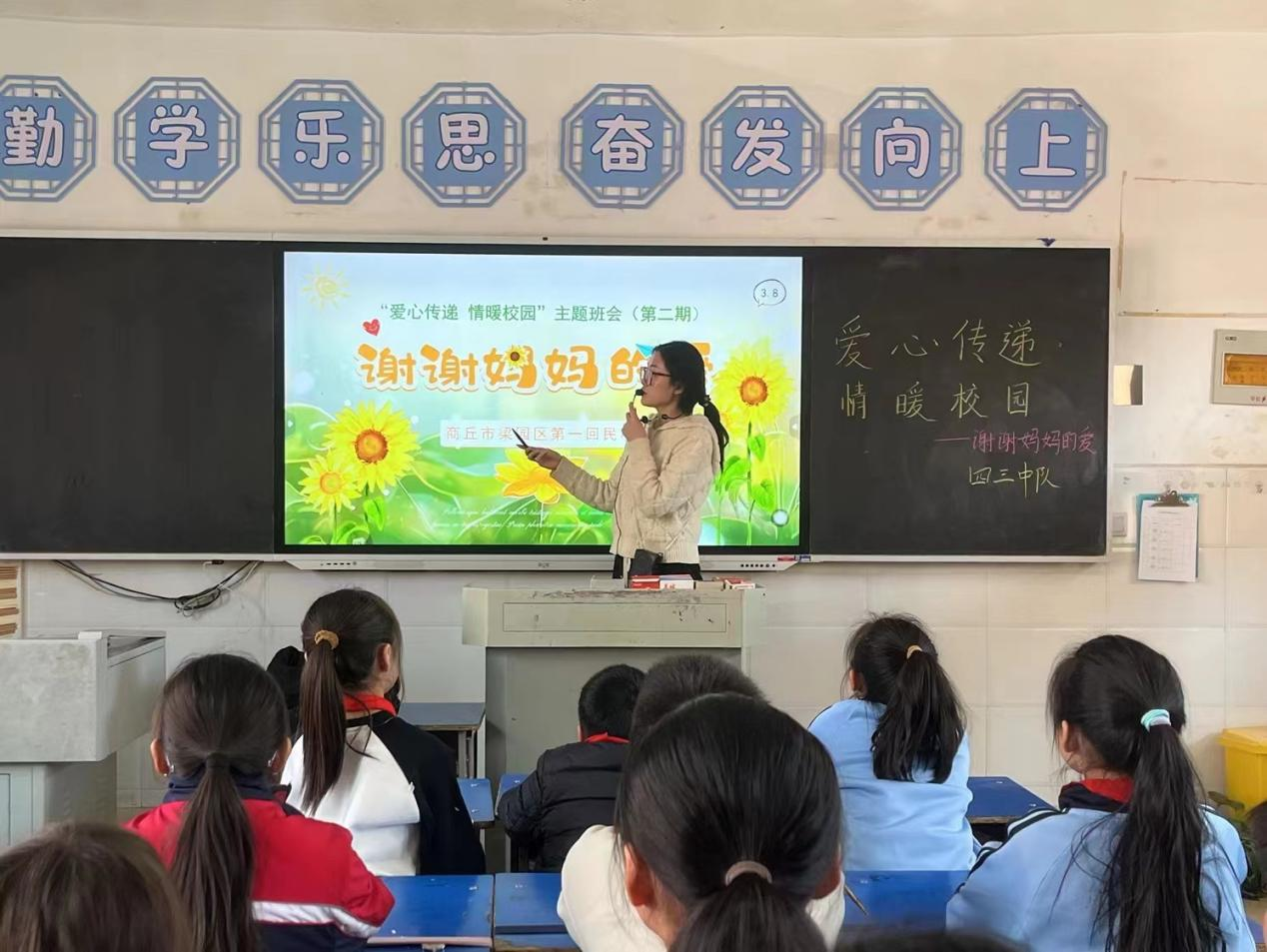 为进一步营造健康文明的校园文化氛围,培养学生健康心理品质,守护学生阳光快乐地成长,近日,商丘市梁园区第一回民小学开展“爱心传递 情暖校园”系列主题班会活动。
