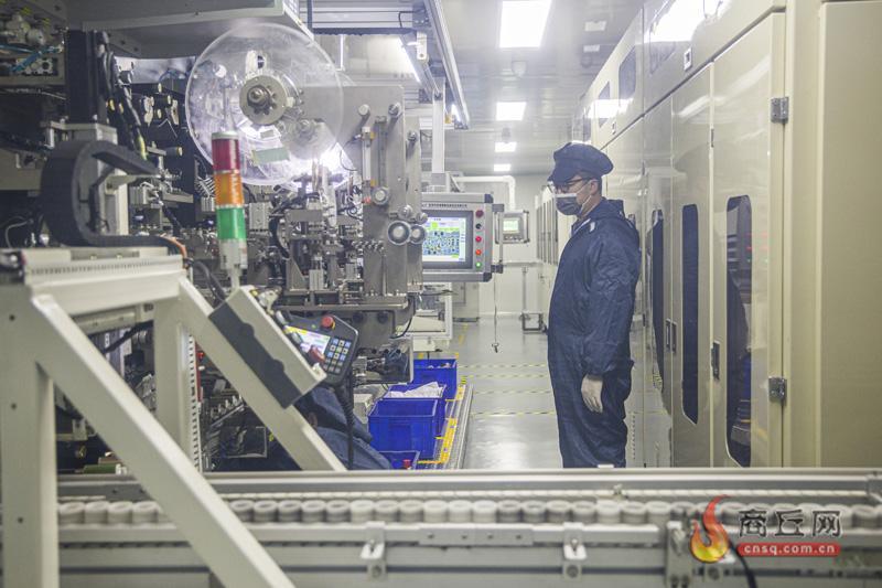 3月16日,技术工人在锂电池生产线忙于赶制订单产品。 据了解,示范区中比新能源电池项目总投资12亿元,主要生产各行业主流产品型号的磷酸铁锂电池产品,年产值可达12亿元。