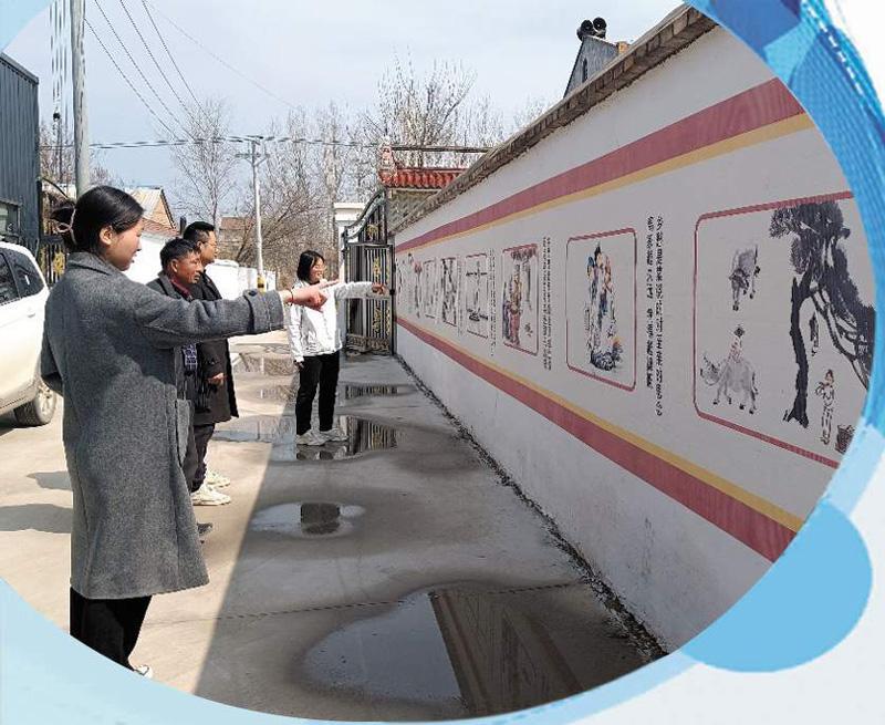 3月26日,雨后初晴,春天的空气分外清新,在淡淡薄雾笼罩下,宁陵县孔集乡刘堌堆村的墙体彩绘愈发鲜艳生动起来。栩栩如生的彩绘吸引三三两两散步的村民驻足观看,大家围观的同时讨论着村庄环境的变化。