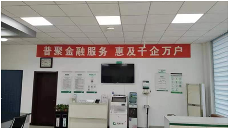 图:中国人寿寿险江苏省分公司营业网点LED屏滚动播放“普惠金融推进月”宣传口号