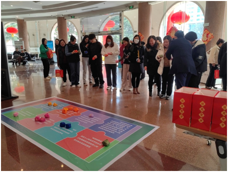 青岛香港中路柜面开展“八项权益知多少”掷沙包学消保互动活动,吸引客户及附近居民积极参与,热烈讨论,寓教于乐,充分发挥柜面金融消费者权益保护基地职能。