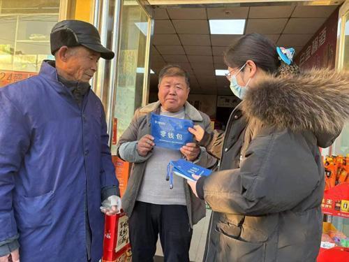 农业银行商丘分行员工向商户普及人民币相关知识,并发放零钱包 本报融媒体记者 霍天艳 摄