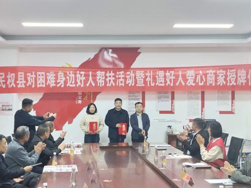3月26日,民权县帮扶好人协会授予爱心人士刘学民、张玉霞,刘世海“爱心大使”荣誉称号。当日,该协会还对河南省道德模范边巧云,“商丘好人”郜永、王新成、张秀云,“民权好人”陈先争等困难身边好人进行了资助。本报融媒体记者 闫鹏亮 摄