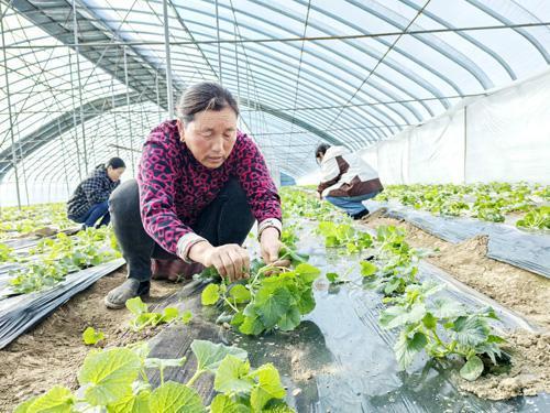3月27日,记者走进该镇唐王庄村的西瓜大棚,种植户李美英正带领村民给西瓜苗进行第一阶段打杈。