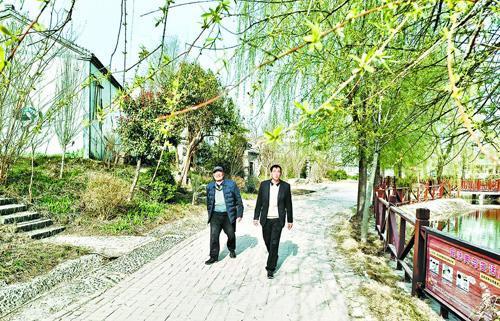 赵洪坡村村民在村中湖边散步。本报融媒体记者 闫鹏亮 摄