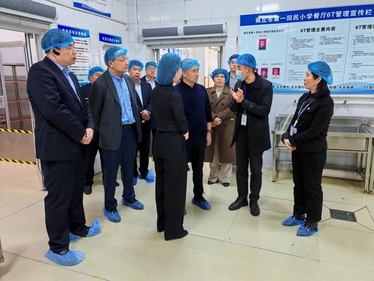 薛天江一行听取了学校校长谢晓燕关于“五育并举”和校园安全工作情况介绍,实地查看了学校食堂环境、食品存储、食品留样、操作间清洗消毒操作流程、餐具消毒记录、工作人员健康证、“明厨亮灶”以及消防燃气安全等方面的情况,调研了家长陪餐工作开展情况。