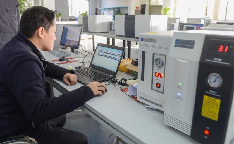 3月31日,技术人员在仪器生产车间查看生产情况。位于示范区的河南中分仪器股份有限公司是一家专业从事电力设备状态检测系统研发、生产及服务于一体的高科技企业,其生产的变压器色谱检测仪器已占国内70%以上市场,市场占有率第一,是国内电力状态监测仪器主流供应商。 本报融媒体记者 崔 坤 摄