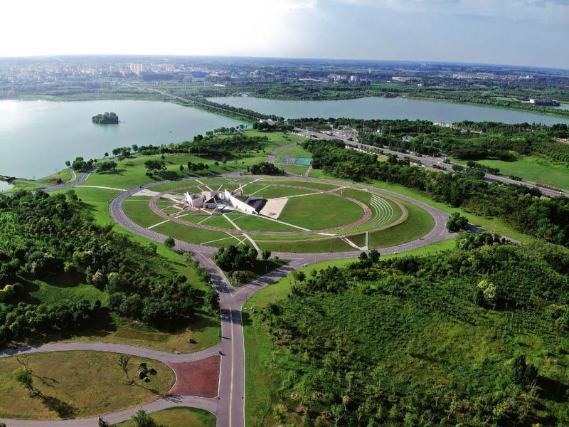 永城日月湖景区是一个“变废为宝”的采煤沉陷区治理工程。近年来,永城市践行“绿水青山就是金山银山”理念,创造性地提出了采煤沉陷区治理、生态环境修复、湿地景观开发于一体的治理模式,打造出“生态、文化、休闲、旅游”合一,具有地域特色的城市会客厅,走出了一条生态优先、绿色发展的路子。