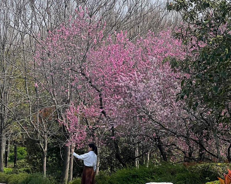 4月1日,走进永城日月湖景区,有梦幻的梅花、热烈的连翘、典雅的白玉兰、灿烂的油菜花……游客们纷纷驻足,用手机记录下这美丽的景色,感受春天的气息,品味花朵的芬芳。