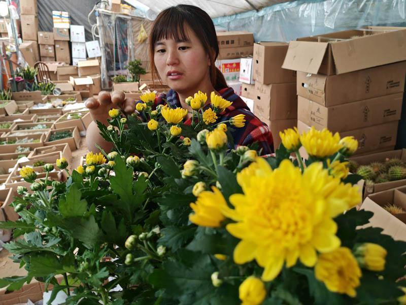 3月28日,清明节前夕,睢阳大道世纪花卉市场,商户正在整理刚到的菊花。作为传统节日,清明节成为追思先辈、寄托情怀的重要时节。近年来,节俭环保、文明祭祀成风尚,祭扫新风悄然兴起,鲜花绿植追思渐受青睐。