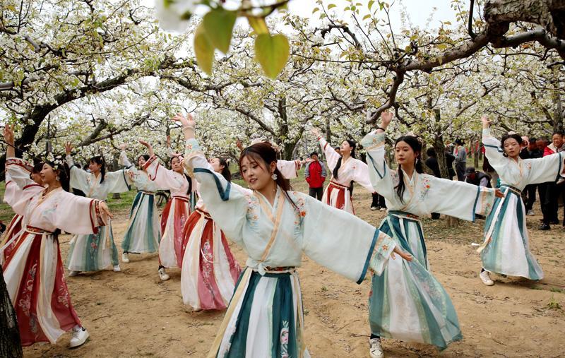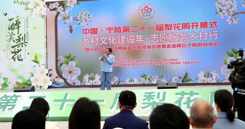 4月2日,中国·宁陵第二十一届梨花周在宁陵县万亩梨园景区开幕。22万亩梨园吸引了众多游客前来踏青、赏花、游玩,20多项文艺活动、非遗展演陆续上演,让游客在享受春光的同时,也欣赏了一顿文化艺术大餐。