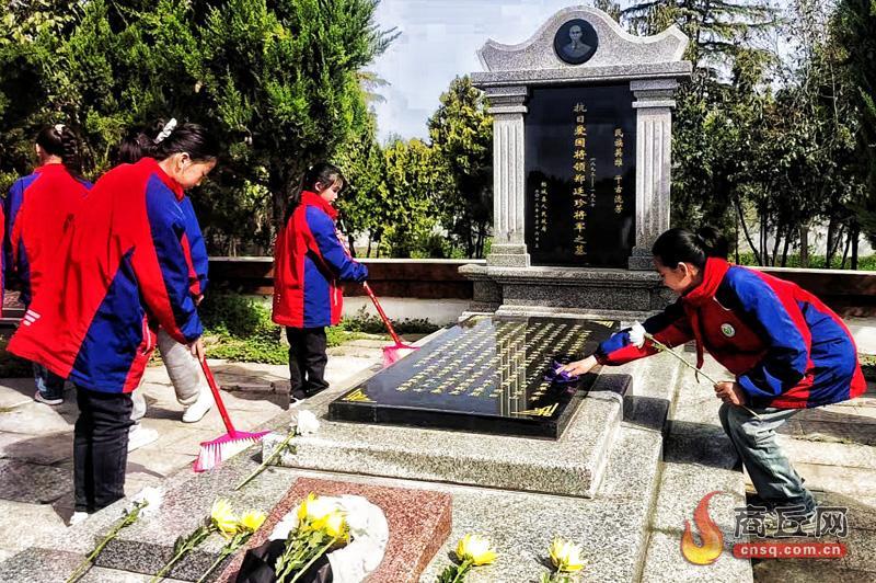 4月1日,柘城县青少年活动中心带领少先队员到县烈士陵园开展祭扫活动。 张子斌 蔺雪峰 摄