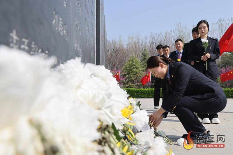 4月2日,中国铁路局集团公司商丘车站党员代表来到市革命烈士陵园,开展清明祭英烈活动。 本报融媒体记者 邢栋 摄
