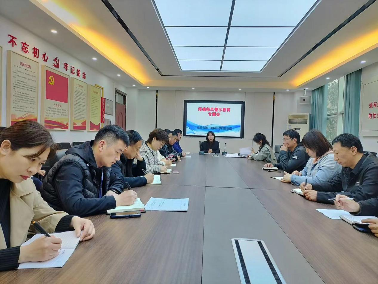 “德高为师,身正为范”。为引导广大教师规范从教行为,树立高尚师德,提高师德修养,近日,商丘市梁园区第一回民小学召开“师德师风和办学行为专项整治强化学习”主题教育暨师德师风警示教育专题会。全体班子成员、各年级主任及副科组组长参加了本次会议。