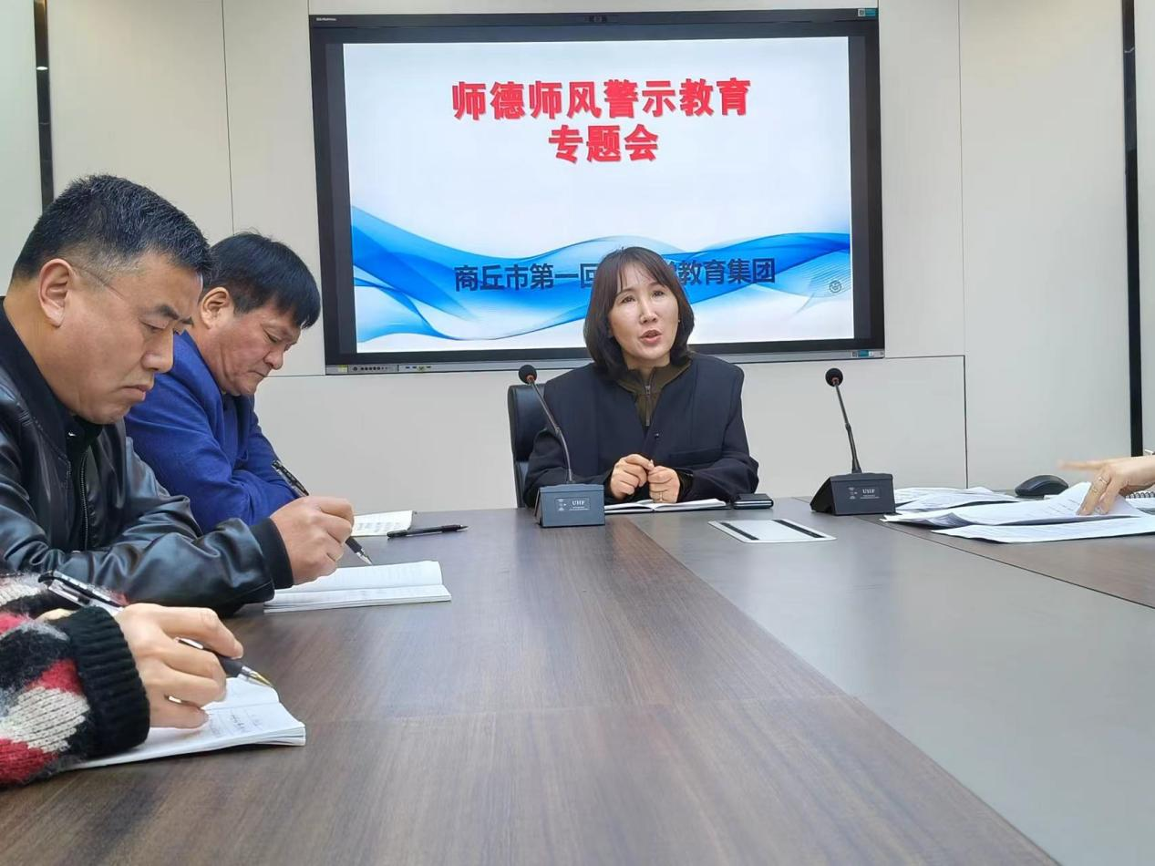 接着,德育校长王敏带领大家认真学习了《商丘市中小学违规办学行为处理办法(试行)》(商教工委[2021]20号)、《商丘市中小学“五项管理”和校内减负工作负面清单》等文件精神,要求全体教师一定要自觉遵守师德规范,守住师德底线,以德立身、以德立学、以德施教,以德育德。