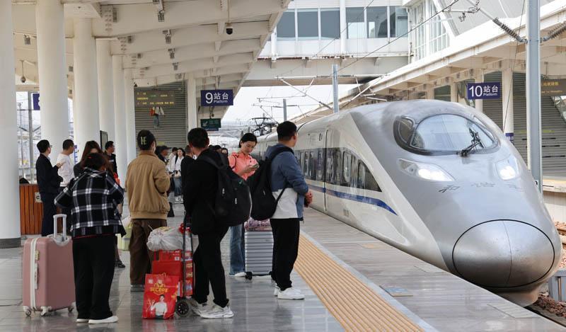 4月7日,商丘火车站,旅客在站台上等候乘车。据悉,4月4日至6日,清明假期期间,商丘火车站共发送旅客12.39万人次,日均发送旅客4.13万人次。其中4月6日全站旅客发送量达到4.46万人,为清明假期期间旅客发送量最高的一天。