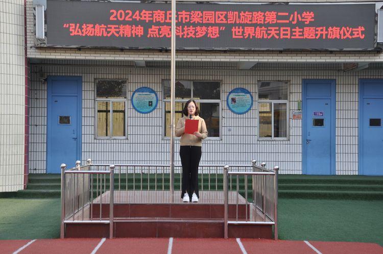 举行主题升旗仪式。在升旗仪式上,学校二年级数学年级组长王颖老师作《航天梦,中国梦!》主题宣讲,讲述了世界航天日的来历和中国航天事业发展的历程以及老一辈航天人所作出的巨大的贡献。让全体同学了解榜样和科技的力量,使同学们的思想再一次受到洗礼。同时,王颖倡议大家在平时的学习和生活中要积极地实践,大胆地想象,勇敢地创造,让科学的种子在同学们的心田生根、发芽、开花。