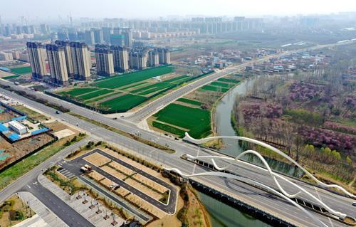 4月8日,航拍镜头下的上清水河生态绿廊景观路线一角。近年来,宁陵县依托22万亩生态梨园,创新“生态康养+休闲度假”旅游模式,实施景区环境和城市面貌改善提升工程,优化上清水河生态绿廊——“老坚决”故居景观路线,积极发展文旅新业态,为文旅发展注入源源不断的新动能。本报融媒体记者 高会鹏 摄