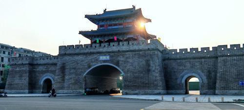 4月8日,夕阳西下,宁陵县旧城改造项目葛天文化城东城门更显古色古香。据了解,葛天文化城重点突出宁陵独特的历史文化,刻意复原了一条宁陵老街,重建四个城门,并设计了八阙八坊,利用周围水系为老百姓营造一个生态良好的开放空间,旨在将葛天文化城塑造成为承载和弘扬宁陵地方文化的新高地。本报融媒体记者 高会鹏 摄