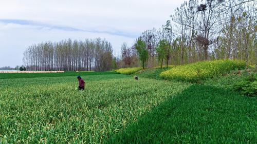 4月8日,柘城县马集乡冯堂村村民正在采收蒜薹。随着气温升高,种植户们迎来忙碌的蒜薹收获季。 张 超 摄
