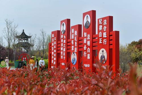 4月6日,市民在夏邑县法治文化公园游玩。苗育才 摄