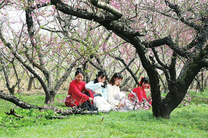 春风拂面百花开,最美春天从芒砀山的花枝间开始。每年3月下旬至4月上旬,芒砀山旅游区周边万亩桃花漫山遍野绚烂开放,高低起伏的花海一望无垠,一派春意盎然的醉人景象。“今年因气温原因,桃花开得比往年晚,清明时正值盛花期。我们借助‘花经济’赋能文旅融合,将赏桃花与假期旅游、民俗文化、住宿餐饮等密切结合,极大拉动了来芒砀山的旅游客流。”芒砀山旅游区负责人刘莹莹介绍,近来,芒砀山旅游区依托周边万亩桃花次第盛开的优势,通过新媒体直播团队不断加大旅游区品牌宣推力度,以深度体验方式推介芒砀山桃花和旅游区好看、好玩的地方,更好吸引全国各地游客特别是永城周边游客走进芒砀山、感受芒砀山。其间,累计吸引7万名以上的游客到芒砀山赏花,带动旅游区门票、住宿、餐饮、购物等旅游收入大幅增长。清明假期文旅市场更是持续高位运行,游客数量、旅游消费均创下近5年同期新高,实现了文化效益和经济效益相统一。