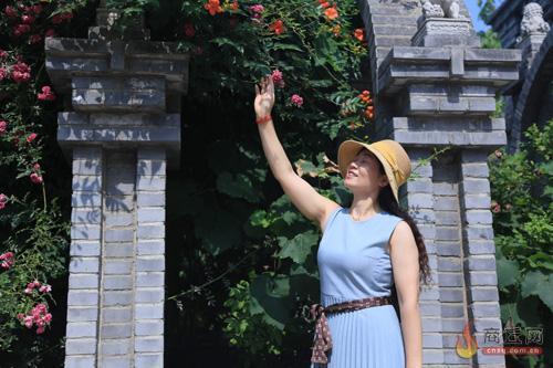 4月15日,市民在虞城县新晋网红打卡地——大虞春秋拍照。近期,气温快速上升,不少市民都换上了短袖、短裙等夏装,提前体验夏日的感觉。 谢卫勋 摄