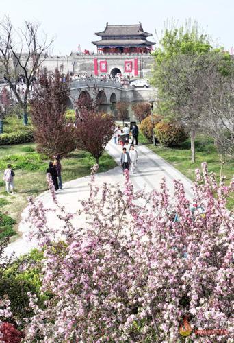 而牡丹作为花中之王,更是盛放得如火如荼。无论是日月湖景区的牡丹园,还是古城西北角的龙岫山,都可以见到它们富丽的身影。或红或白,或黄或紫,在春风的伴奏下,就像妖娆的舞者展现出独特的韵味。